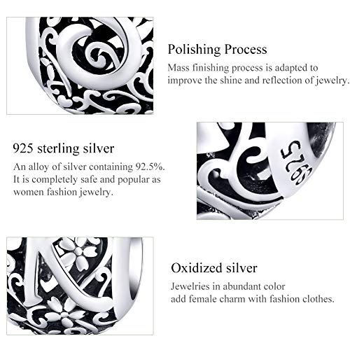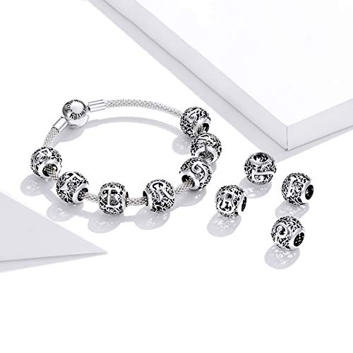 Letter Bead Charms argento sterling 925 - Perline lettere in argento sterling 925, non facili da sbiadire e ossidare. Senza piombo e senza nichel. Compatibile per bracciali, braccialetti e collane a catena.