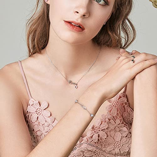 Qings Bracciale Infinito Argento Sterling con Moissanite Simbolo Infinito di Pietre di Nascita di Cuore Braccialetto Regolabile Bianco Zirconi Gioielli Regalo Festa Della Mamma per Mamma Donna