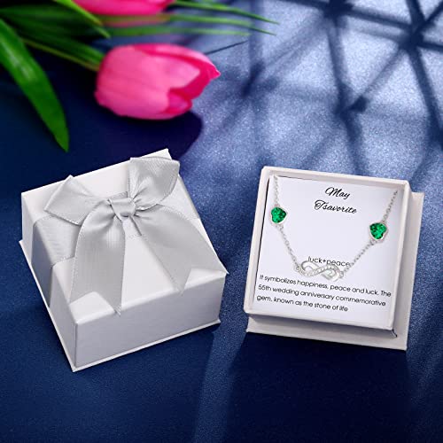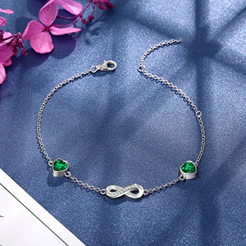 Qings Bracciale Infinito Argento Sterling con Smeraldo Simbolo Infinito di Pietre di Nascita di Cuore Braccialetto Gioielli Regalo Festa Della Mamma per Mamma Donna