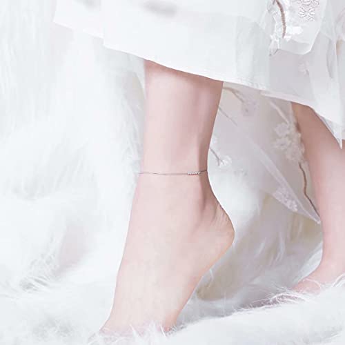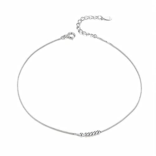 Qings Cavigliera Donna in Argento 925 con Piccole Perline di Platino - Cavigliera Regolabili Squisiti Catena Sfere Affascinanti Bello Regalo di Gioielli