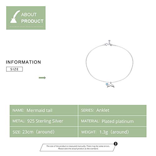 Qings Cavigliera Donna Argento Sterling 925 Cavigliera Estiva Spiaggia con Ciondolo Sirena Regolabile Cavigliera Bracciale Sirena Cavigliera Gioiello Regalo per Donna Ragazze