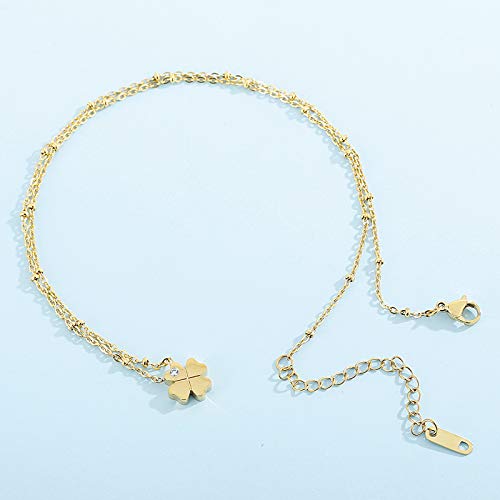 Qings Donna Collana Ciondolo Quadrifoglio Collana Girocollo Trifoglio Fortunato Acciaio Inossidabile Oro