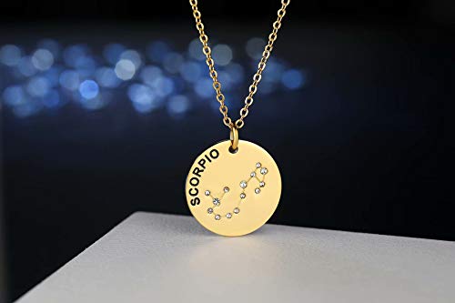 Collana Constellation, Scorpione (24 ottobre - 22 novembre) Le persone nate in questo periodo sono adatte per indossare la collana Scorpio. Il pendente della collana ha un diametro di 2 cm, una lunghezza della catena di 45 cm + 5 cm, materiale in acciaio al titanio, superficie placcata in oro e zirconi di alta qualità intarsiati. Il motivo della costellazione è squisito, lo zircone può riflettere la luce come un diamante