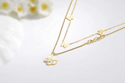 Qings Madreperla Farfalla Collana da Donna 14K Placcato Oro Collana con Ciondolo Farfalla Regolabile per Donne e Ragazze