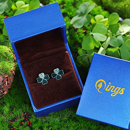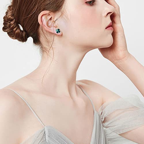 Qings Orecchini a bottone con quadrifoglio 925 sterline d'argento Orecchini a bottone a forma di cuore con foglie verdi brillanti festa di San Patrizio Regalo di gioielli floreali per donne e ragazze