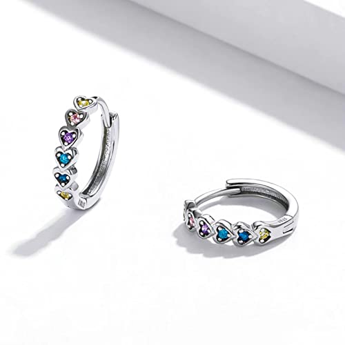 Qings Orecchini a Cerchio Amore Cuore per Donne Argento Sterling 925 Cuore a Cuore Orecchini Piccoli a Cerchio Colorati Zirconia Cubica Orecchini Huggie per Ragazze