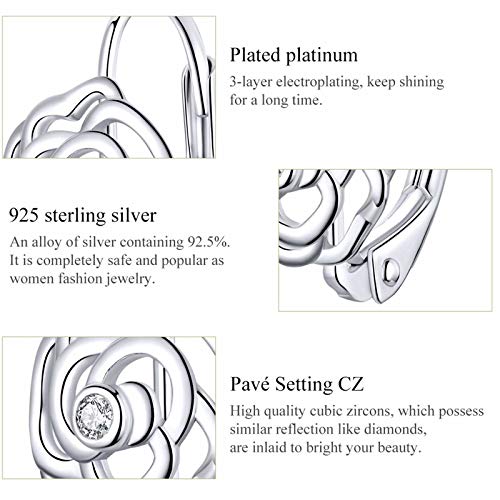 Materiale e tecnologia: gli orecchini a rosa sono realizzati in argento sterling 925 e la superficie è placcata in platino, che manterrà gli orecchini lucidi di lunga durata. Il centro del fiore è intarsiato con uno zircone che è stato lucidato ripetutamente, conferendo agli orecchini a rosa una luce abbagliante.