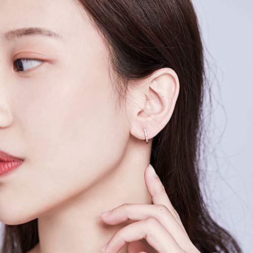 Qings Orecchini a cerchio Huggie in argento sterling 925 intarsiato con delicata zirconia cubica come regalo di compleanno per donne e ragazze