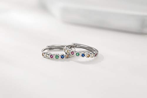 Qings Orecchini a Cerchio Piccolo in Argento Sterling 925 - Orecchini Ragazza con Zirconi Colorati, Orecchini in Argento Sterling Ipoallergenici
