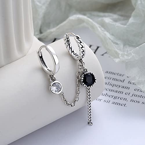 Qings Orecchini a Doppio Foro Con Zirconi Neri - Orecchino a Doppia Cerchio in Argento Sterling Due Fori Catena Lunga Nero Rotondo Zircone CZ Gioielli Regalo per Donne e Ragazze