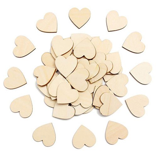 Qingsb, 50 cuori di legno per creazioni fai da te, da appendere o da usare come decorazioni 2 cm.