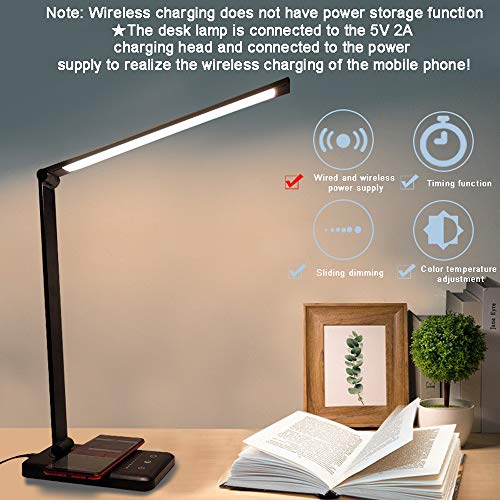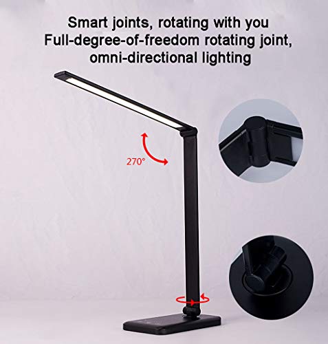 QINGTIAN Lampada da scrivania a LED,con 5 Livelli di Regolazione del Colore - Controllo sensibile al Tocco,dimmerabile Porta di Ricarica USB può Essere ricaricata Senza Fili per telefoni cellulari