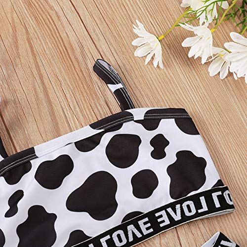 Qinhanjia Abiti da Bambina Top Corto Senza Maniche Mucca Stampa Canotta Pantaloncini Stampa Lettera Pantaloni Corte Larghi Set di Vestiti Estivi Set di Abbigliamento per Ragazze