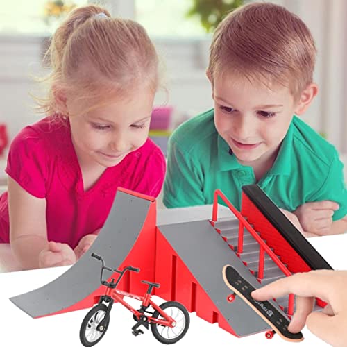 QINIFIFY Set di Rampe per Mini Skateboard, Skatepark Kit Pattino per le dita fai da te Bicicletta da Dito in Metallo Giocattolo per Miniatura Mountain Bike con Ruote di Scorta e Attrezzi per Bambini