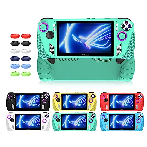 QINOUK Custodia per Asus ROG Ally, Custodia Protettiva Antigraffio in TPU Morbido Case con 4 Impugnature per Pollice, per Asus ROG Ally-Verde