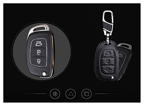 QINQIN LUQIQI Cassa Chiave per Auto in Vera Pelle Adatta per Hyundai I10 I20 I30 HB20 IX25 IX35 IX45 Tucson Accessori per Auto Portachiavi Avante (Color Name: Black-C233)