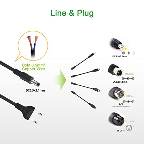 Pacchetto include: 1*36V 3A Caricatore con connettore DC5521, 1*DC5521 a DC5525 Adattatore, 1*DC5521 a DC8mm Adattatore, 1*DC5521 a RCA10mm Adapter, 1*DC5521 a GX16 Adapter, (si prega di controllare il tuo + e -del tuo GX16 connettore prima del ordinare).