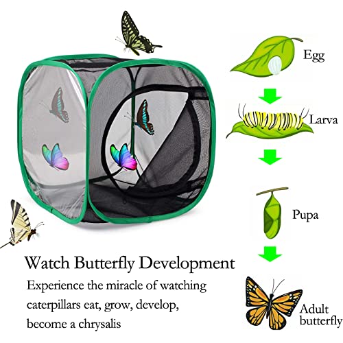 QIODAZOO Terrari per Insetti, Gabbia per Habitat Farfalla di Mesh Pieghevole Trasparente, Casetta per Farfalle Gabbia di Pianta Allevamento Piantine, 30 x 30 x 30 cm