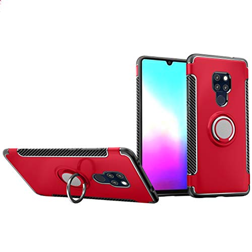 QiongniAN Custodia per Huawei Mate 20 HMA-L09 HMA-L29 HMA-LX9 HMA-AL00 HMA-TL00 Custodia Case Cover 360 Gradi Anello Magnetico Rotante in Metallo Red