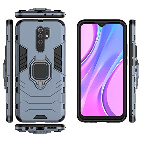 QiongniAN Custodia per Xiaomi Redmi 9 Caso, 360 gradi girevole anello titolare cavalletto con supporto magnetico auto custodia per Xiaomi Redmi 9 M2004J19C M2004J19G M2004J19AG Custodia blu