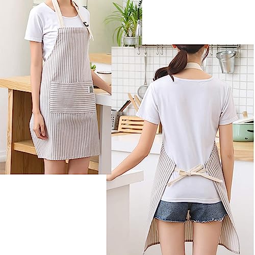 Qipuneky 2 Pezzi Grembiule Cucina Donna Cotone E Lino, con Tasca Grembiule per La Pulizia, Regolabile, Adatto per Casa E Cucina, Pulizia