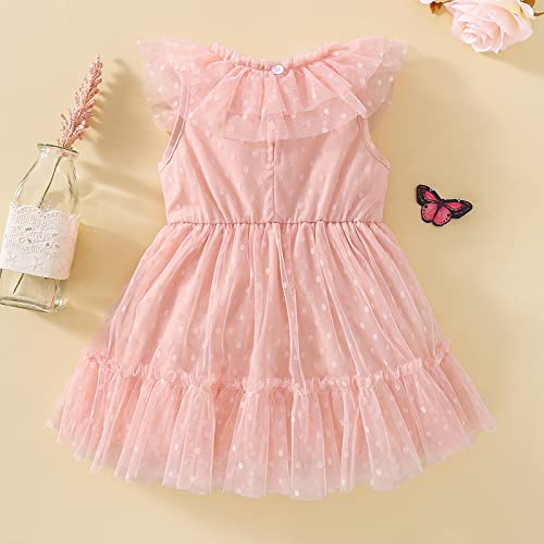 Qiraoxy Bambino Ragazza Tulle Vestito Bambino Ragazza Senza Maniche Polka Dot Tutu Principessa Vestito Da Partito Fiore Ragazza Abito Da Sposa Estate Prendisole Abbigliamento, rosa, 3-4 anni plus