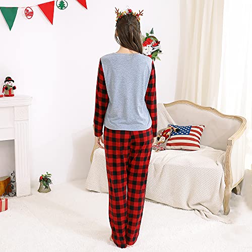 Qiraoxy Vestiti di Corrispondenza della Famiglia di Natale Pigiama, Stampata Lettere Camicia Pantaloni Scozzesi Abiti da Notte Set per Bambino Adulti del Capretto Animali Domestici