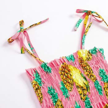 Qiraoxy - Vestito estivo da bambina, senza maniche, con bretelle in pizzo, gonna da spiaggia, con fiori e ciliegie, per 6 mesi, 3 anni Ananas rosa. 12-18 Mesi