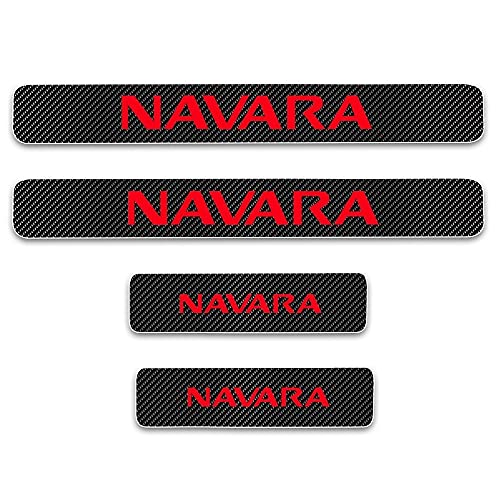 Qirc - Adesivo per soglia auto, motivo Navara in fibra di carbonio, 4 pezzi, colore: rosso