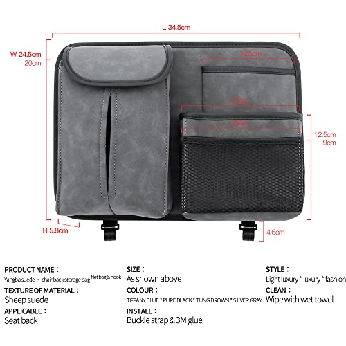 Materiale di alta qualità: questo organizer per sedili è realizzato in pelle scamosciata di alta qualità con cuciture e attacchi su ogni bordo, rendendo questo organizer posteriore per sedili auto più resistente e raffinato. Le cinghie larghe sono abbastanza resistenti per aumentare il massimo carico portante.