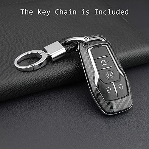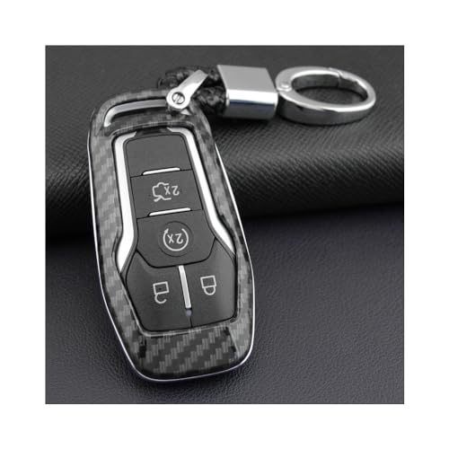 Qirc Custodia per chiave auto in fibra di carbonio ABS per Mondeo Mustang Edge Explorer F150, accessorio decorativo per auto (con fibbia)