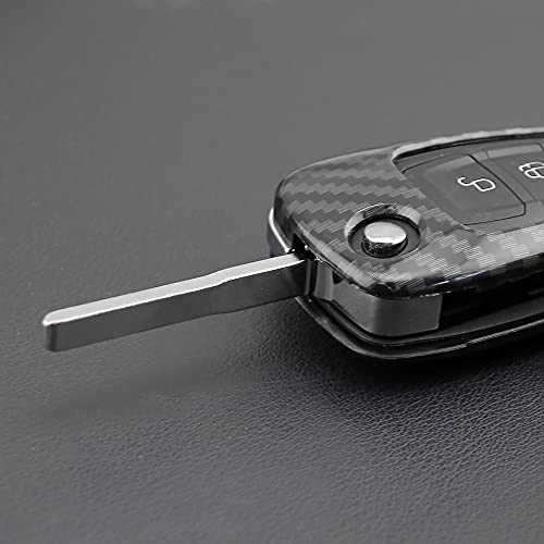 Qirc Custodia in fibra di carbonio ABS per chiave auto Focus Escape Kuga Smart Key Protector Car Key Fob Decorazione accessorio per auto (con fibbia)