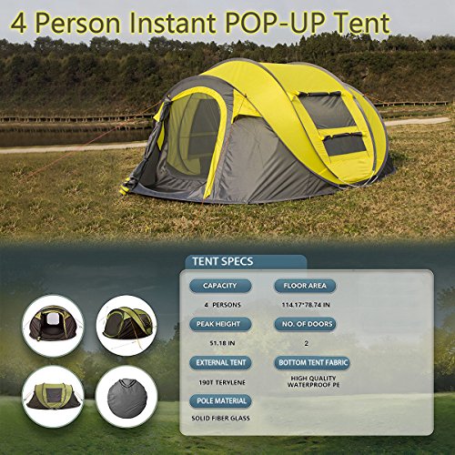 Tenda dimensione di espansione: prodotto: 290 * 200 * 130 cm (114,17 * 78,74 * 51,18 pollici), spazio sufficiente per 4 persone;