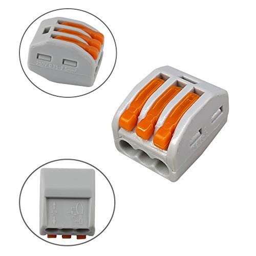 QitinDasen 25Pcs KV222-413 Leva-Dado Cavo Connettore, 3 Porte Connettore Conduttore Compatto, Morsettiera Cavo Connettore Molla Rapido