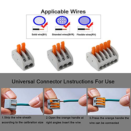 〓 Questi sono ottimi per le connessioni rimovibili poiché non è necessario eseguire la saldatura. Adatto per fili di rame di dimensioni 0.08~4mm² / 28~12 AWG. Collega qualsiasi combinazione di fili di rame solidi, intrecciati e flessibili in modo più rapido e affidabile. Se hai bisogno di cambiare altri fili, basta alzare la levetta ed estrarre ciò che ti serve e sostituire, il che è molto pratico.