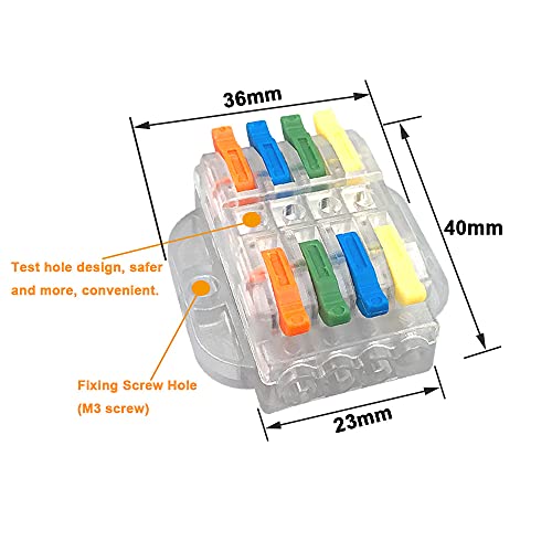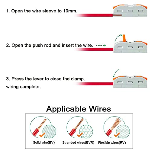 〓 Questi sono ottimi per le connessioni rimovibili poiché non è necessario eseguire la saldatura. Adatto per fili di rame di dimensioni 0.08~4mm² / 28~12 AWG. Collega qualsiasi combinazione di fili di rame solidi, intrecciati e flessibili in modo più rapido e affidabile. Se hai bisogno di cambiare altri fili, basta alzare la levetta ed estrarre ciò che ti serve e sostituire, il che è molto pratico.