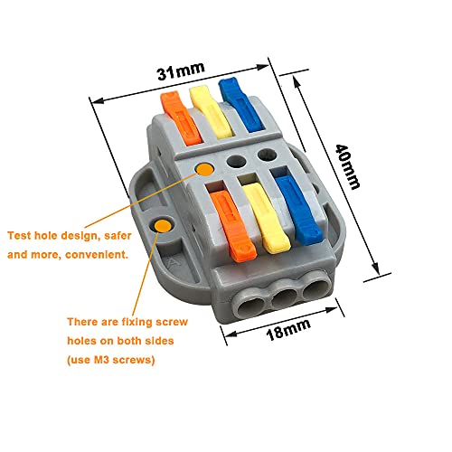〓 Questi sono ottimi per le connessioni rimovibili poiché non è necessario eseguire la saldatura. Adatto per fili di rame di dimensioni 0.08~4mm² / 28~12 AWG. Collega qualsiasi combinazione di fili di rame solidi, intrecciati e flessibili in modo più rapido e affidabile. Se hai bisogno di cambiare altri fili, basta alzare la levetta ed estrarre ciò che ti serve e sostituire, il che è molto pratico.
