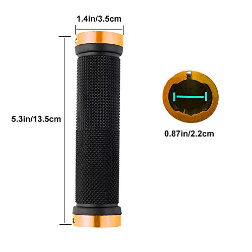 QitinDasen 2 Paia Premium Impugnature Bici, Ergonomici Manubrio Bicicletta, Maniglia Gomma Antiscivolo, Doppio Serratura in Alluminio, Impugnature Bici per Diametro Esterno di 22mm (Dorato)