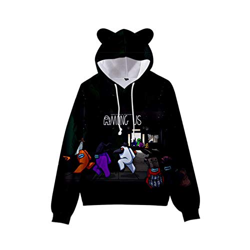 Qiulanjia Felpa con Cappuccio da Donna Among Us Stampa 3D Felpa con Orecchie di Gatto Carino Pullover Autunnale da Ragazza Casual Nero