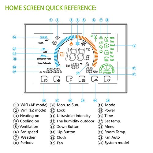 ☆ Regolatore di temperatura per controllo WiFi, per Android e per controllo iOS WiFi. Il controllo remoto tramite applicazione mobile o computer (WIFI), gestisce la temperatura della tua casa. Anche quando sei in qualsiasi parte del mondo in qualsiasi momento.