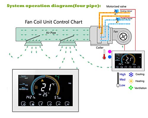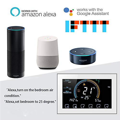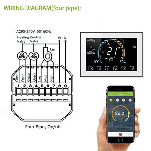 Qiumi Termostato Smart Wifi Regolatore di temperatura programmabile per aria condizionata con schermo LCD a 4 tubi, Visualizzazione meteo, indice UV Funziona con Alexa Google Home 95~240 V CA.