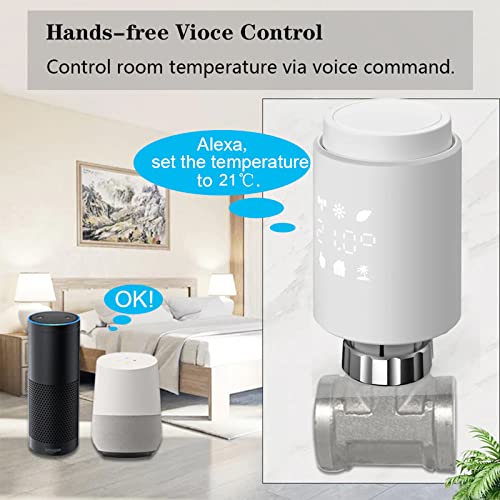 ☆.【Voce e telecomando】: supporta il controllo remoto APP tramite smartphone, vivavoce insieme al controllo vocale tramite Alexa e Google Assistant dopo la connessione riuscita. la sua valvola all'app Tuya / smart Life basata su un gateway cablato Tuya ZigBee;