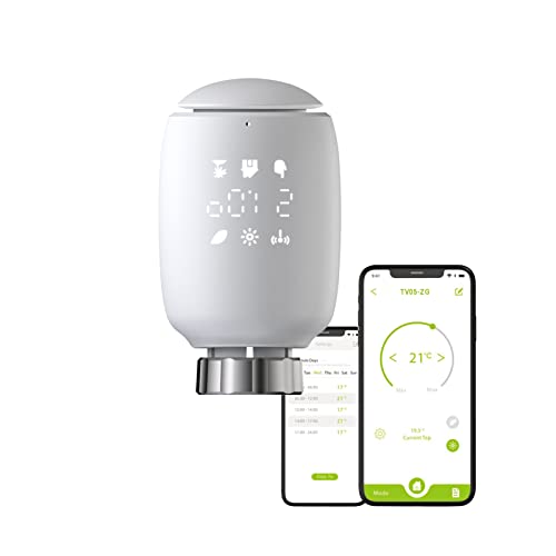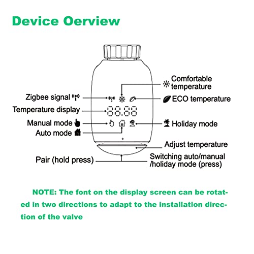 Qiumi Zigbee, termostato per radiatore,eTRV, Alexa, Googlehome,dimensioni compatibili con la maggior parte delle valvole, la direzione del carattere del display è regolabile