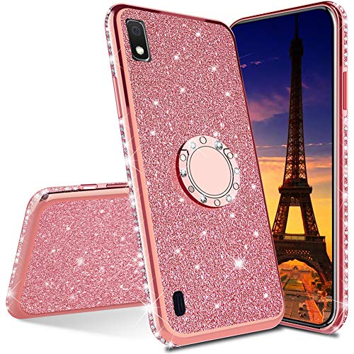 QIWEIQING Compatibile con Cover per Samsung Galaxy J6 Plus / J6 Prime Custodia Protettiva Ultra Sottile con Glitter Custodia Protettiva in Rotante Custodia per Samsung J6 Plus Rose Gold KDL