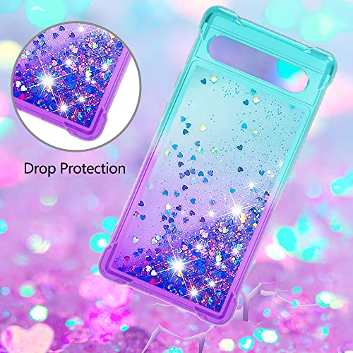 QIWEIQING Custodia Google Pixel 7a, Custodia Google Pixel 7a, Custodia Glitter Liquid Glitter Girl TPU Silicone Protettivo Morbido Glitter Quicksand Case per Google Pixel 7a.Blue Purple YBJ