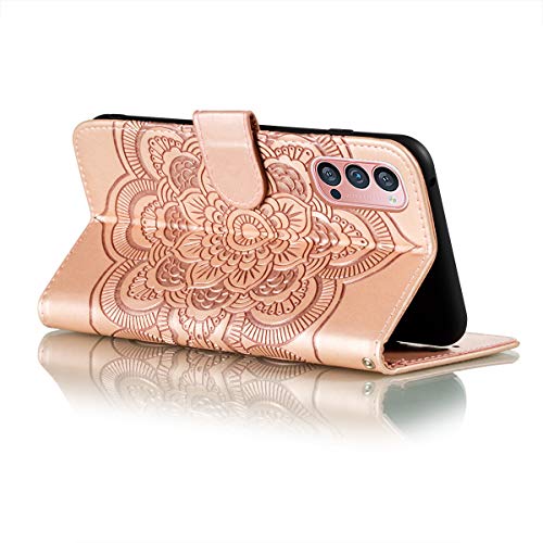 QIWEIQING Oppo Reno 4 Pro 5G / custodia a ribalta custodia in pelle con funzione di supporto custodia per cellulare con chiusure magnetiche a strato di carta oro rosa PJ.
