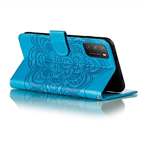 QIWEIQING Xiaomi Mi Poco M3 / Redmi Mi 9T / custodia a ribalta custodia in pelle con funzione di supporto custodia per cellulare con chiusure magnetiche a strato di carta blu PJ.