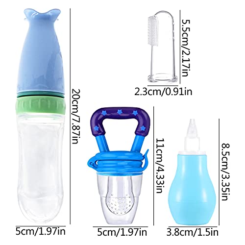 Qixuer 1Pcs Alimentatore per Alimenti in Silicone,2 Pcs Baby Spazzolino da Dito 1Pcs Aspiratore Nasale 2 Pcs Frutta Ortaggio Ciuccio Tettarella Silicone per Porridge di Riso Cereali con Succo di Latte