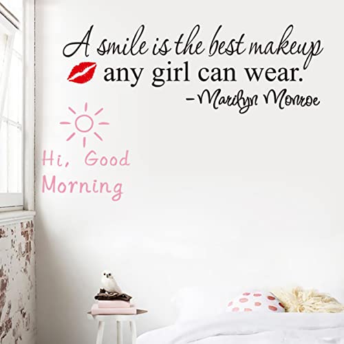 Qixuer Adesivo Murale Frase, Adesivo Murale Con Citazione Ispiratrice Adesivo Da Pareti Adesivo Da Parete In Vinile A Smile Is The Best Makup Any Girl Can Wear Con Hi Good Morning Wall Sticker
