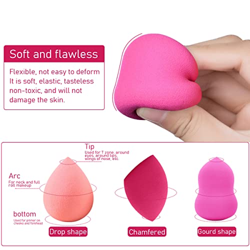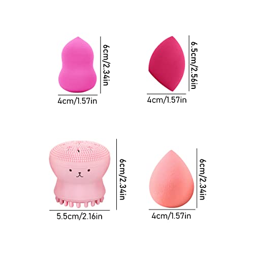 ❤Set di valori: questo set di spugne per il trucco viene fornito con 3 spugne di bellezza di diversi colori (blu, viola, rosa) e diverse forme (a forma di goccia, a forma di zucca, a goccia d'acqua tagliata obliquamente), più 1 simpatico detergente per il viso di polpo rosa Il pennello, confezionato in una bella scatola di immagazzinaggio, è utilizzato per un'organizzazione a prova di polvere e facile da trasportare.